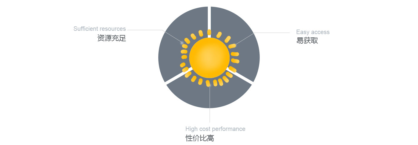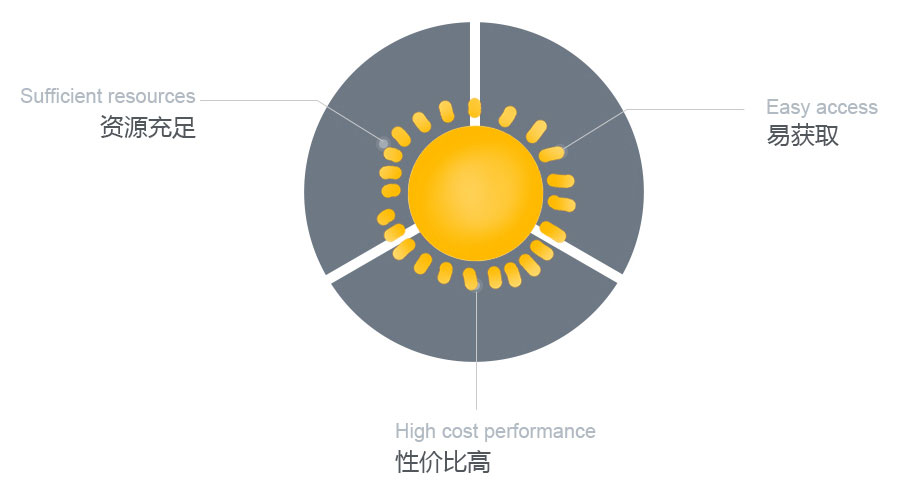 太陽在地球上每照射一小時(shí)所產(chǎn)生的能量,就可以滿足全球整年的能源需求。與需要提煉燃燒化石燃料,占地又費(fèi)時(shí)的傳統(tǒng)能源不同,任何人都能購買和安裝太陽能組件并享受豐富的太陽能資源。從長(zhǎng)遠(yuǎn)來看,使用太陽能還可顯著并長(zhǎng)期節(jié)約用電成本。
